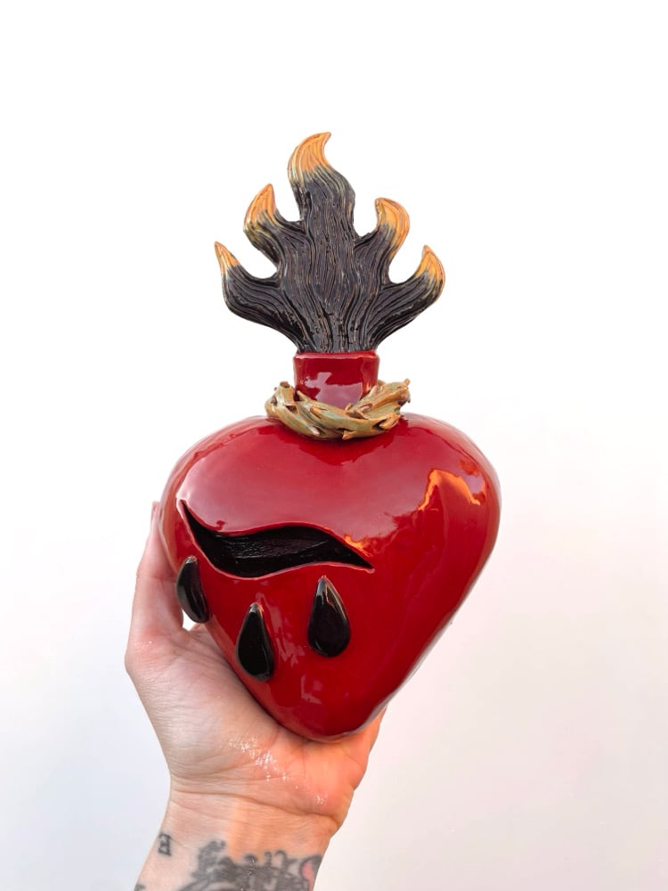 One of a kind Sacred Heart wall hanging, made from single origin terracotta clay.