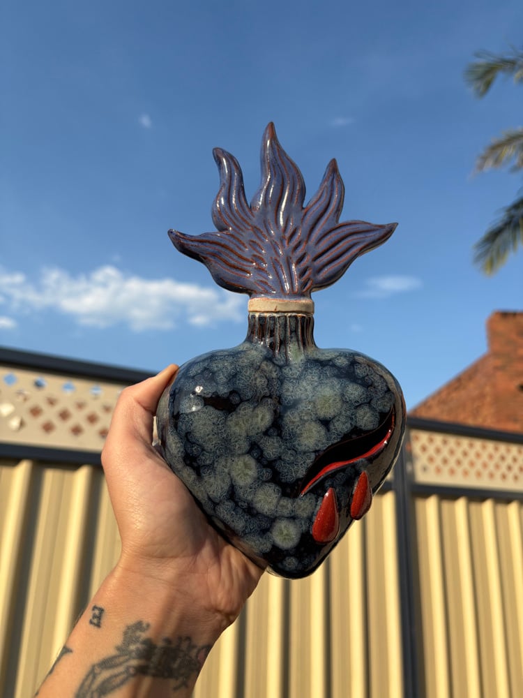 One of a kind Sacred Heart wall hanging, made from single origin terracotta clay.